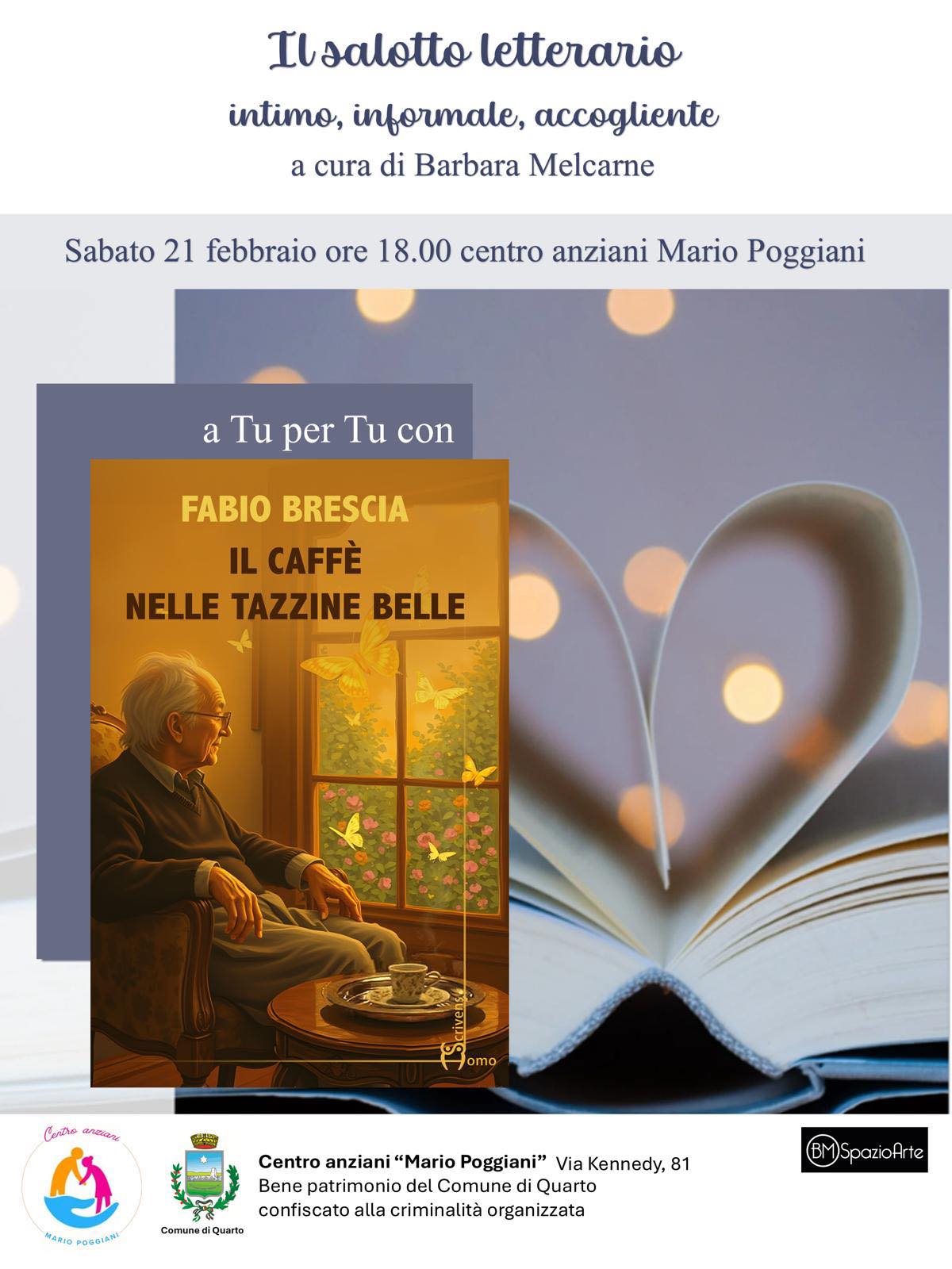 Sabato 21 Febbraio ore 18:00 nel Salotto Letterario del Centro anziani Mario Poggiani, bene comunale confiscato alla camorra, sarà ospite Fabio Brescia, che presenterà il suo ultimo libro: “Il caffè nelle tazzine buone”