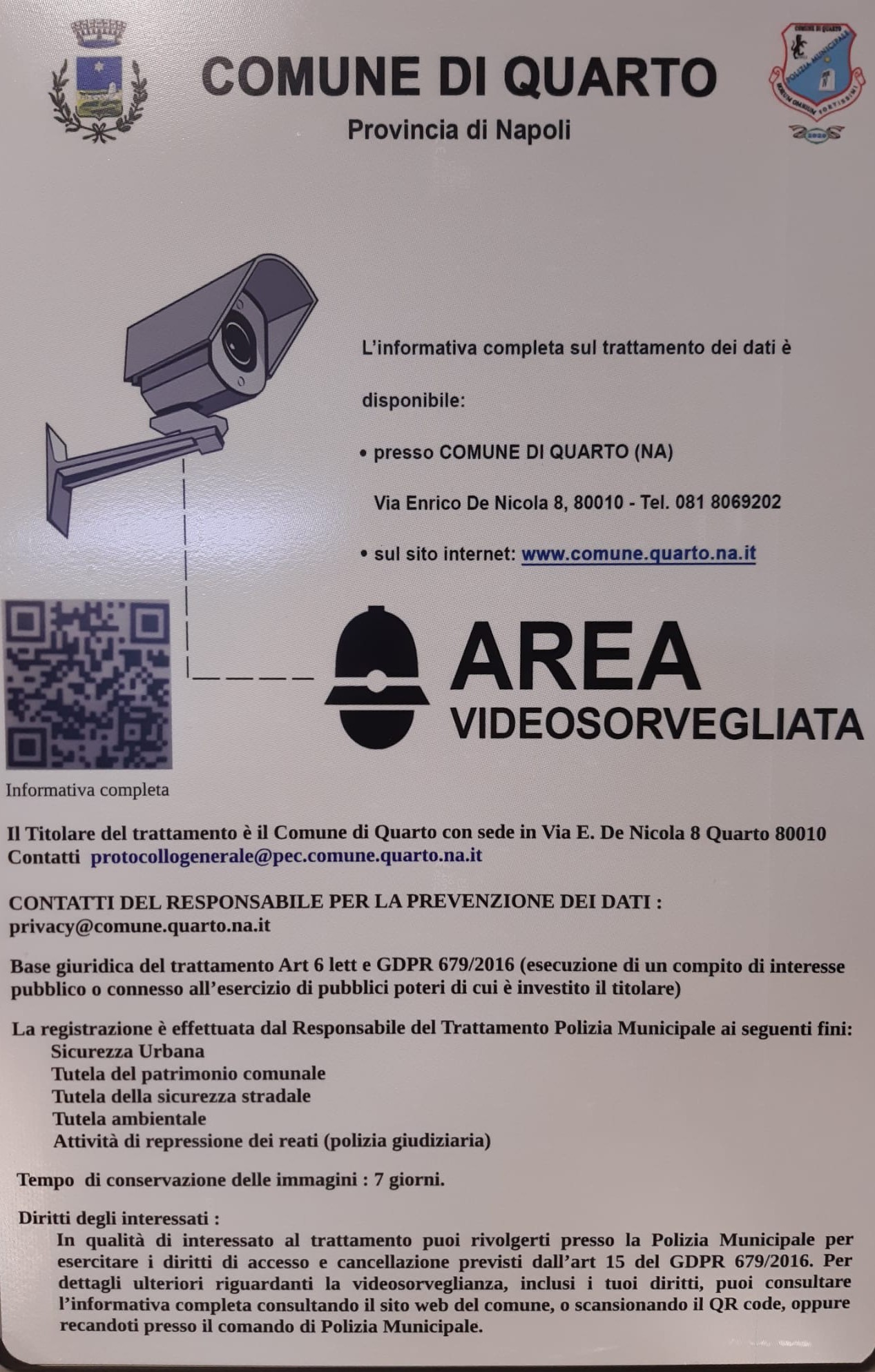 Il Titolare ha provveduto a designare per iscritto il Responsabile del trattamento dei dati di Videosorveglianza nella figura del comandante della Polizia Municipale, il quale può essere contattato tramite posta elettronica all’indirizzo e-mail: poliziamunicipale@comune.quarto.na.it